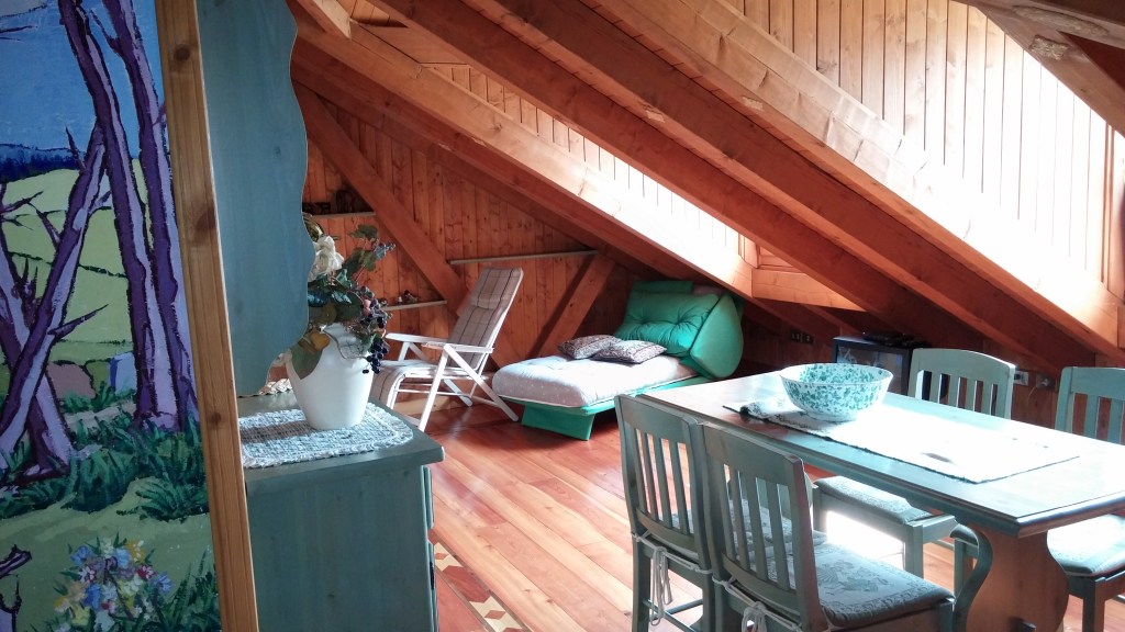Mansarda situata a 300 metri dal centro di Asiago, in zona tranquilla e immersa nel verde, al terzo piano, con una camera, ampia zona giorno e un bagno.